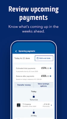 • Stay ahead of your bills - your upcoming payments summary lets you know what’s being paid and when.