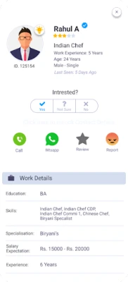 The app boasts user-friendly features such as shortlisting, sharing contact details, connecting via WhatsApp link, accessing reviews, and reporting to the admin. Each day witnesses hundreds of candidates registering on this app, making it a dynamic platform for job opportunities within hotels.