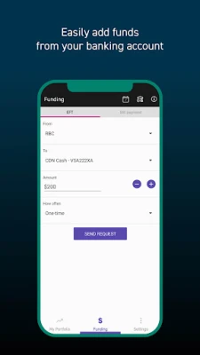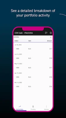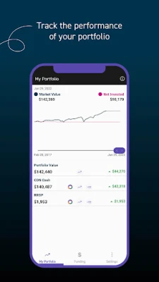 • Track your portfolio’s progress • View detailed investment activity • Easily add funds to your account