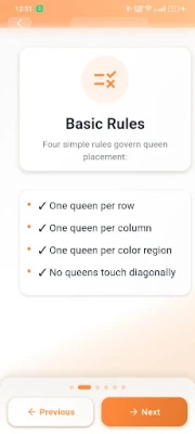 Place one queen in each row, column, and colored region while making sure no two queens attack each other. Simple to learn but tricky to master, Queen Quest offers hours of brain-teasing fun for puzzle lovers.
